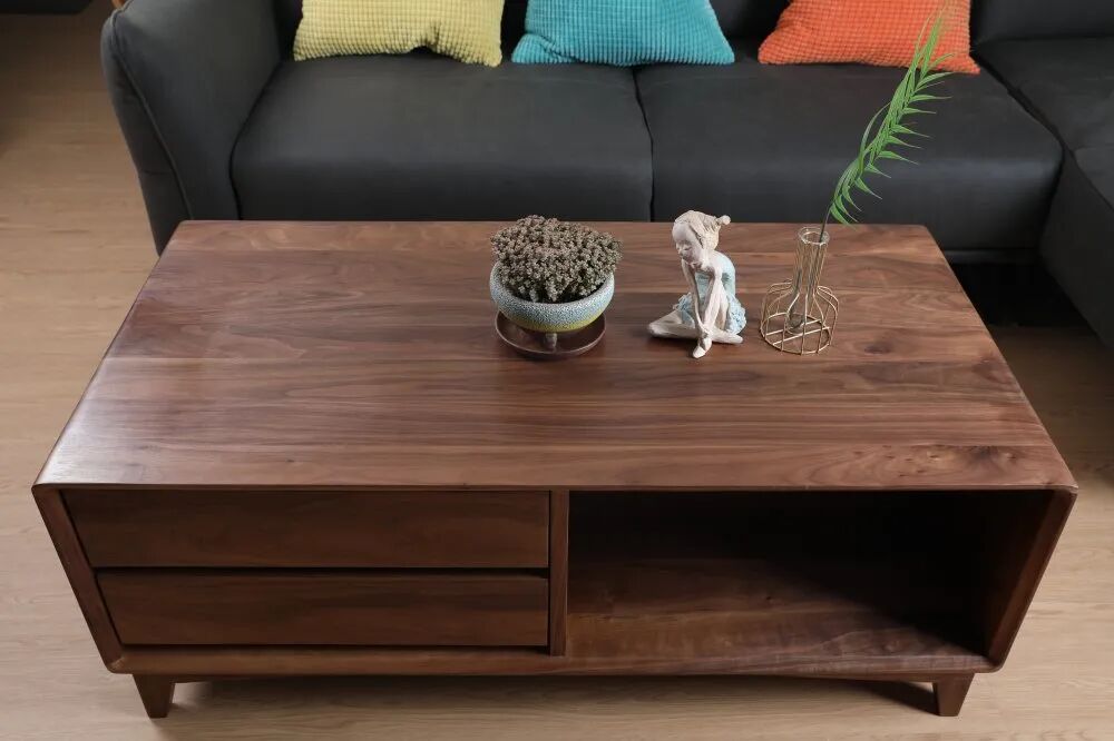小户型的茶几不需要太大,但是储物收纳功能必不可少。开放格+双抽屉的组合,客厅中使用频繁的小物品轻松拿取。
