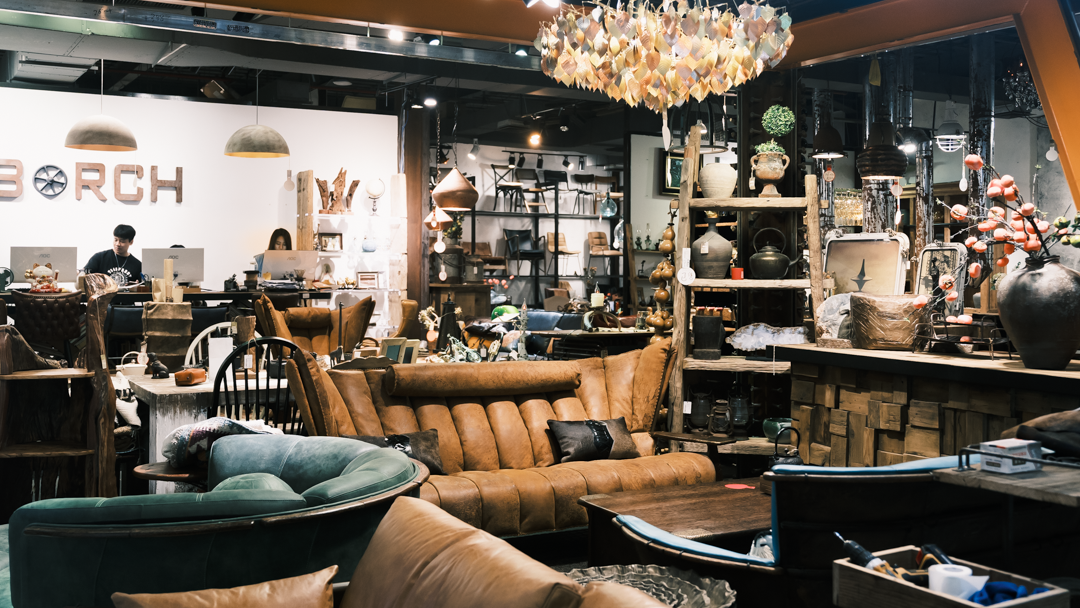 店主还将店内的空间划分为不同的样板展区,通过格局、硬装、软装协调搭配,塑造出不同的风格,把“设计师的格调客厅”淋漓尽致地还原出来。