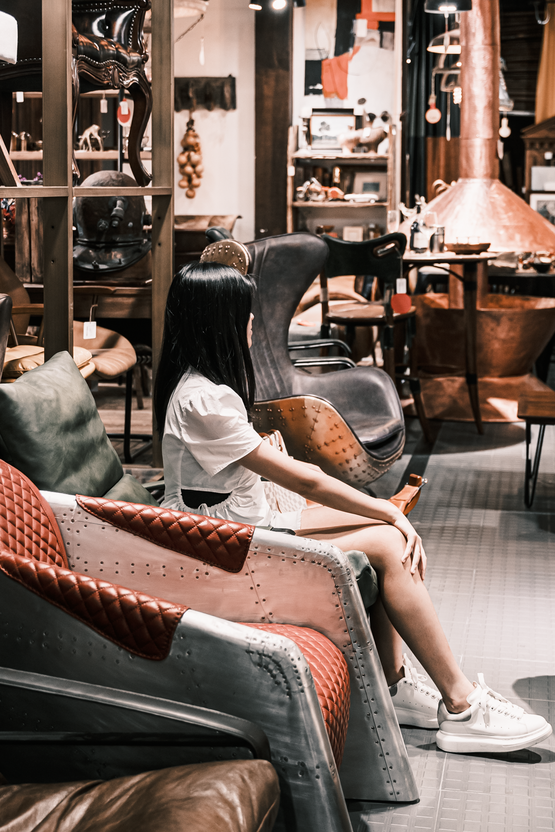 像这面摆满不同款式的椅子墙,每把椅子都各具特色,精致地像复古电影中的道具,随意试坐了下,十分舒适,真的是颜值与实力并存。