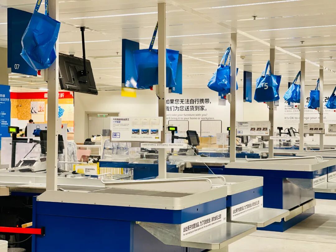 位于苏州的宜家商场。宜家编织袋被挂在收银台显眼处,而它在中国台湾已经改名为“福台” / 图虫创意