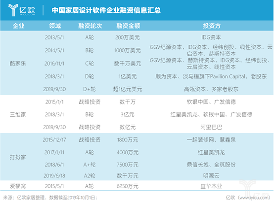 从1994年圆方软件成立,到2019年的今天,中国家居设计软件已经走过25年。相比较近10年的激烈拼杀,以及足够大的中国家居消费市场规模、产业数字化升级大势,中国企业应该好好思考,未来10年如何向全球讲好“中国故事”。1994年,华南理工大学毕业的李连柱创办圆方软件,主要是室内装饰设计应用,2004年转型做定制家具品牌“尚品宅配”,2017年带领公司在创业板上市,早年的圆方软件在整个公司的业绩占比在逐渐下降。2018年,软件业务收入仅为7735万,占全年营业收入的1.16%。也许李连柱并没有想到25年后的今天,家居家装行业会掀起一场激烈的“软件厮杀”。家居设计软件行业已经出现25年,很长一段时间,圆方软件一直都是“独舞”,当时的中国软件市场很不规范,盗版软件猖獗,没有形成所谓的竞争格局,即便如此,圆方依然有可观的收入和市占率,2004年,切入定制家居领域,处于无敌寂寞的状态,因为这条赛道并没有什么对手。2008年,美国起家的装修设计平台Houzz成立,2010年9月获得首轮融资,2011年,完成1160万美金B轮融资,2013年1月,完成3500万美金C轮融资,2014年,完成1.65亿美金D轮融资,2017年6月,完成4亿美金E轮融资,估值40亿美金。Houzz的发展还是“刺激”了国内一批创业者。今天的国内,这条赛道已经有越来越多的玩家进来。中国家居设计软件领域产业图谱中国市场的“真正开始”2008年,哥伦比亚大学博士陈伟昌在美国成立了爱福窝的前身——MyHome3D公司,研发软件期间,陈伟昌回到上海,于2013年成立了爱福窝。现在来看,陈伟昌是除了圆方之外,最早做装饰设计软件的创业者之一。2008年,黄晓煌、陈航还在美国UIUC读研究生,对浮躁的江湖还不了解。蔡志森还在圆方软件担任副总裁,也没有开始创业。从2010年开始,中国家居设计软件市场开始涌现一批新公司,2011年底,黄晓煌回到杭州创办酷家乐;2012年初,蔡志森和另外三个伙伴一起在广州创办三维家;2014年,数联中国成立;2015年,打扮家在北京成立;2017年,居然之家收购Autodesk旗下的室内设计软件;2018年,红星美凯龙布局设计云;2019年,阿里巴巴躺平设计家发布…为什么是最近10年才开始真正成气候?这个要追溯到中国家居家装产业的发展背景,大致可以分为四个时间节点去看理解:第一个时间节点是1998-2005年,房改福利房取消住宅货币化,装饰形态逐渐形成,装饰市场准入条件逐渐放宽,小规模的住宅装饰企业获得合法资质进入市场,大量游击队和中小装饰公司出现,但是并没有任何线上化、数字化。第二个时间节点是2005年-2013年,2005年,是整个装饰装修行业开始线上化的萌芽期,装修公司开始有机会去线上做展示,大概在2010年左右,陆续开始有VC注意到这个产业并愿意去做一些试探性的投资,对于资本而言,这个产业线上化程度低,不够性感,进化缓慢,所以我们将2005-2013年定义为线上化的萌芽期与探索期。所以我们看上面很多家居设计软件企业都是在这个时间点或者之后出现。第三个时间节点是2014-2016年,这三年是互联网家装最疯狂的三年。O2O大热的背景下,效率与体验都有很大的提升空间,上百亿的资金进场找机会,地产商、工装公司、传统家装公司、互联网家装纷纷来搅局,但是在这个过程中,无论是资本还是创业者收效甚微,忽视了行业发展的本质,激进打法导致最后完全失控,引发一两百家企业倒闭,这三年多,对于行业来讲,是激动与失落并存的三年。而这三年,对于家居设计软件企业来说,同样面临着巨大的煎熬和挣扎。第四个时间点是2017-2019年,这三年是家居建材企业的主角。2017年,中国家居企业上市大年,数十家公司陆续登陆IPO,定制家具成为2017年当之无愧最大的热词,尤其是2018-2019年,大家的业绩增速普遍放缓,行业焦虑的情绪更为明显,上市公司纷纷探索新模式寻求新的业绩增长点,同时也意识到企业信息化、数字化是企业需要补的课。在当时的时间点上,陈伟昌创办的爱福窝,有非常明显的先发优势,产品实力、团队背景都很强,2013年打败了Autodesk成为天猫家装的合作伙伴。成立不久的酷家乐曾在2013年和爱福窝竞争跟阿里合作,结果惨遭秒杀。因为这次落败,酷家乐意识到这个对手实力强劲。从资本的关注度上,2015年爱福窝获得宜华木业6250万元A轮融资,加上陈伟昌个人投资,账上有近亿元的资金,账上有钱心中不慌,爱福窝挖了很多Autodesk的人,一度让酷家乐既羡慕又紧张。酷家乐虽然也融资1000万美金,但是手里并不宽裕,产品也一直处于追赶爱福窝的状态。中国家居设计软件企业融资信息汇总酷家乐的机会与转折遗憾的是,爱福窝的势能并没有保持好。今天再看市场上的玩家,爱福窝的势能越来越弱,前几年的势能并没有助推其真正跑出来。原因在于,爱福窝在团队、资金、资源上的先发优势,但是战略方向上出现失误,促使其心理上的膨胀,一口气布局了多条业务线。这种追求大而全的布局结果并不是很理想,每块业务都不够精,反倒是给了成立比较晚的酷家乐、三维家机会,酷家乐聚焦装修和设计师软件、三维家专注全屋定制的软件,爱福窝的排面很宽,但是也导致老板的管理半径、团队组织能力都没有跟上,最后的结果不尽人意。有一个不争的事实是,2015年,酷家乐跟爱福窝打的确实很艰难,双方长期处于胶着的状态,直到2016年底,酷家乐才真正从产品上可以喘一口气,反超爱福窝。再到2017年,真正反超爱福窝,爱福窝的势能直