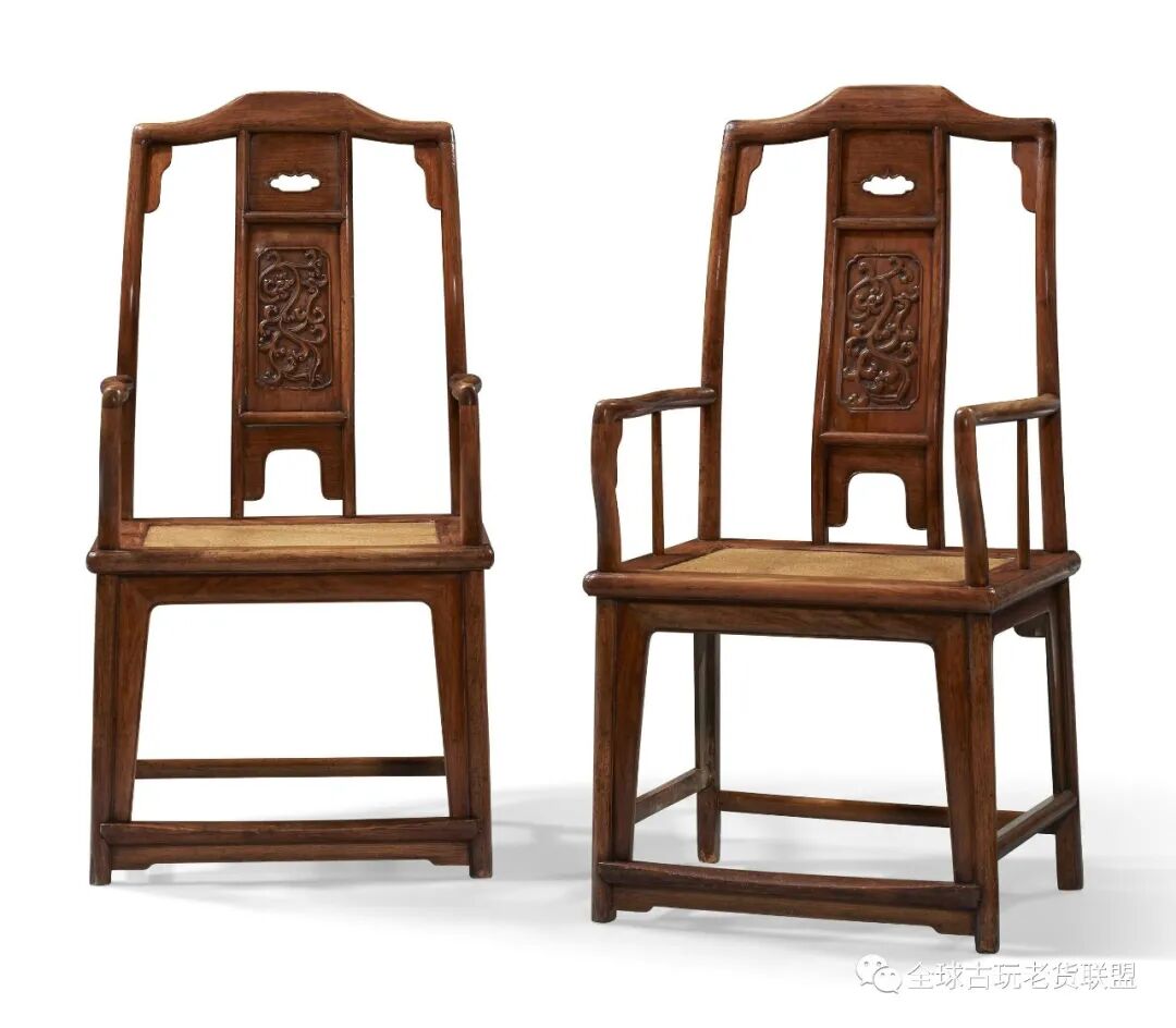 十九世纪 黄花梨四出头官帽椅一对(10-15万)