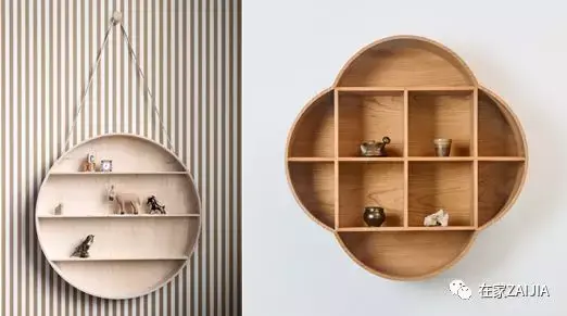 左边是屋主们超爱的ferm LIVING 圆形墙挂收纳盒,右边是璞素的咏梅多宝格,如果用来摆放中式或者日式风格的手作、茶具,右边会更有中式韵味、古雅,但又不会和周围的浅色北欧、日式家具风马牛不相及。