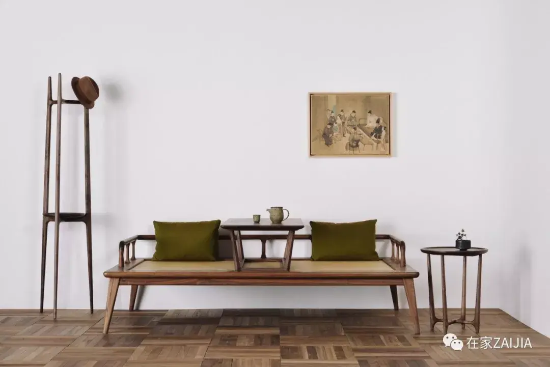 如今的罗汉榻在保留了社交娱乐功能基础上,逐渐往沙发演进,不但缩小的进深还和长度,还加高了椅背,还能添一些灵活拆卸的坐垫。