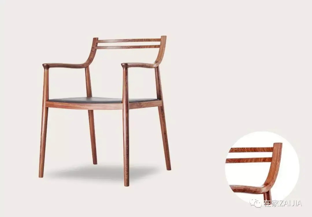 椅背虽然只有细细两条,但是能支撑肩膀,扶手贴合手臂弧度。加上皮革座面和填充物,更适应现代人习惯软座的习惯。