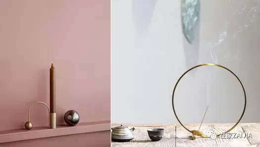 左边是ferm LIVING的黄铜烛台,右边是璞素的不锈钢镀钛晓月香插,放在一起也是完全没有违和感。