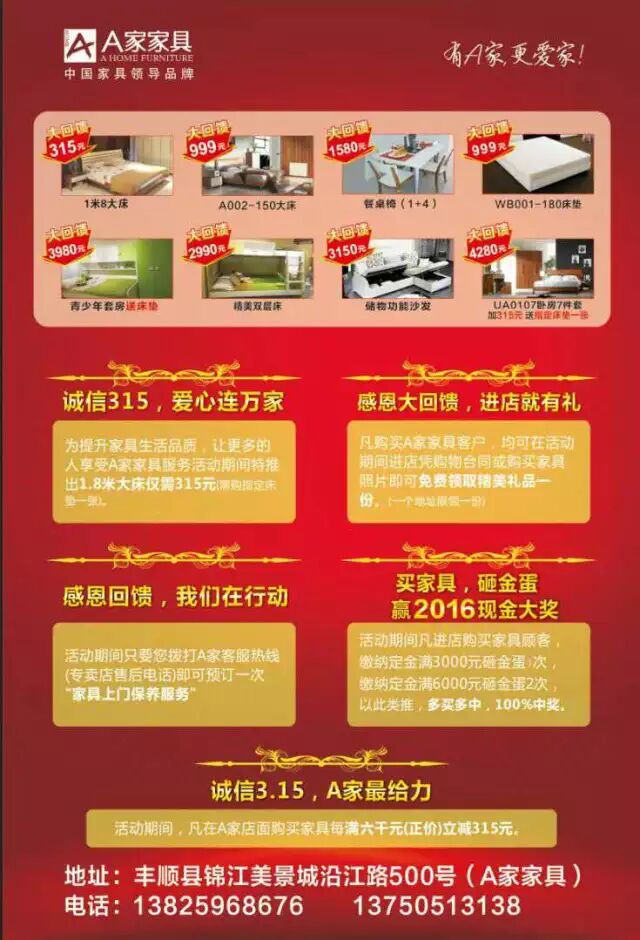 A家家具315感恩大回馈