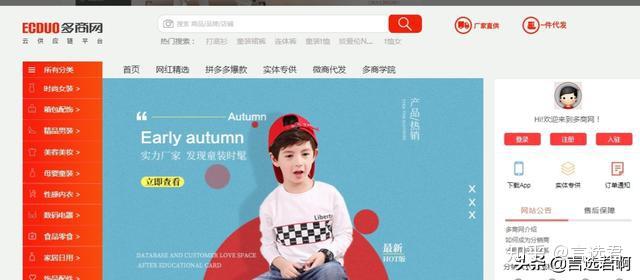 20、货源之家 类目比较齐全,有服饰、箱包、珠宝首饰、母婴、家居日用、美容护肤。