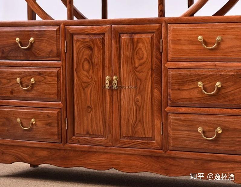 还是一样,这些木材通常没有清晰的抛物线花纹,而是散乱的色斑和细小的牛毛纹,木材本身颜色以寡淡的灰黄色为主,主要靠后期染色,木质比较粗糙,所以一般要用比较厚的漆膜进行遮盖,最后常常表现出大面积的绚丽光泽。