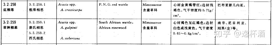 商品材名称:wattle科 别:Minosaceae 含羞草科
