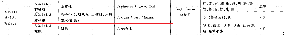 树种中文名:黑核桃