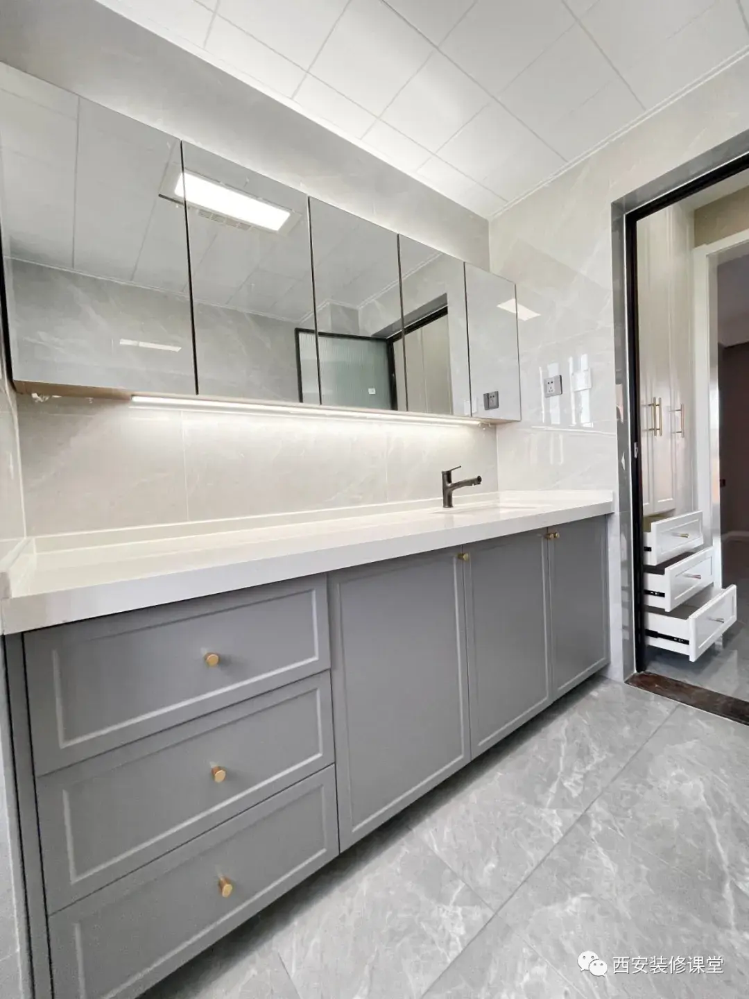 ▲卫生间浴柜也是一样的,根据空间,定制要比成品更实惠,收纳更多,更能满足功能需求,同样这些都得一家全屋定制来定制制作,千万不要让家里全屋定制分开好几个定制商,这个完全是自己给自己找麻烦。所有做全屋定制的只要有厂子的都可以做任何木作,如果只会做橱柜或者只会做衣柜,那百分百不可能是自己做的。