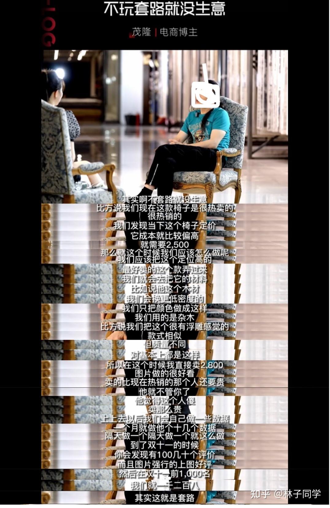 下面是一个佛山电商大佬讲的生意经,没有套路就没有生意,虽然说不能完全代表一种生产产品的态度,毕竟他不是做生产的,但是可见一个重要家具产区,各位老板这种浮躁赚钱的气息多重。