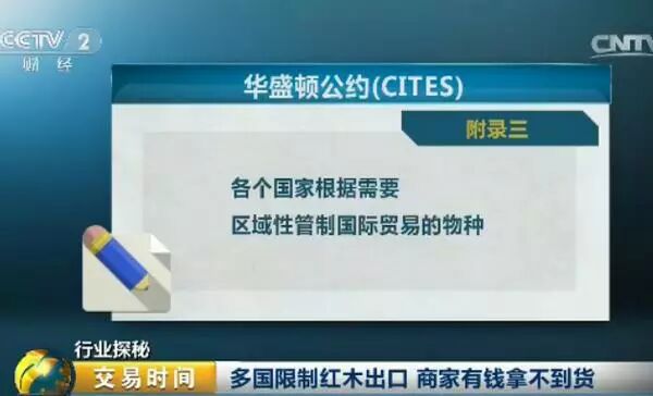 有一些红木品种被列入了华盛顿公约附录,凡是列入附录的物种,贸易都受到管制。今年有一些红木企业使用的主流木种被加入了附录,导致木材商没有木材可以卖,红木家具企业没有木头可以用。