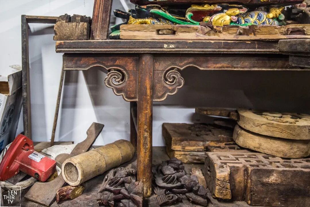 店里大都是民国时候的东西,也有更古老的清朝时候的家具。老式的圈椅、斗柜、板凳、门窗扇、雕花斗拱……特别有韵味,正儿八经的老货。