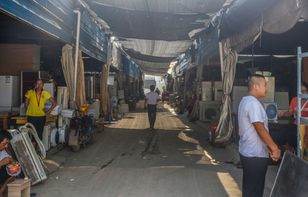 下车之后跟着导航穿过菜市场、废墟和花木市场,再沿着路标指示继续走,就到了二手市场。路况是差了些,倒不算很难找。