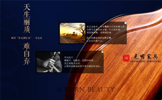 3.乌金木家具中天然精彩的纹理,在乌金木的天然木色中,金色和黑色曲线相互交织,跃然眼前,不仅颜色醒目,而且极具流动的视觉感,并且这种纹理在任何一个切面都可以清清楚楚的表现出来,因此乌金木家具就自然的散发着浓烈的自然气息。