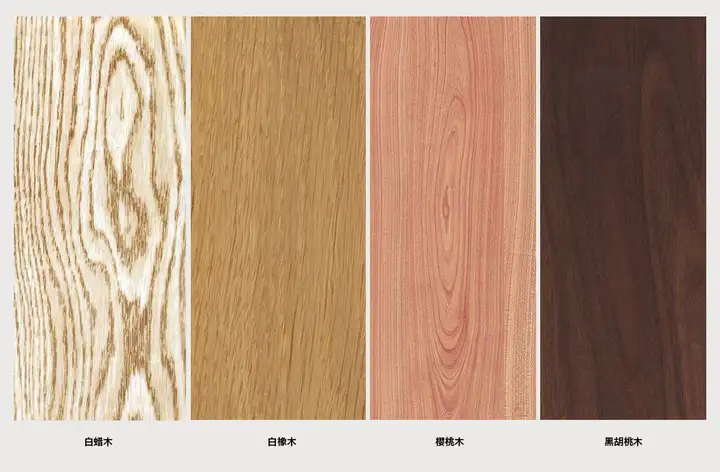 因为我们是做的比较简洁现代的家具,使用原色木蜡油3032,不做表面上色,所以对木材的纹路质感要求相对要高点。因此挑来挑去,选择了这四种:白蜡木·白橡木·樱桃木·黑胡桃木