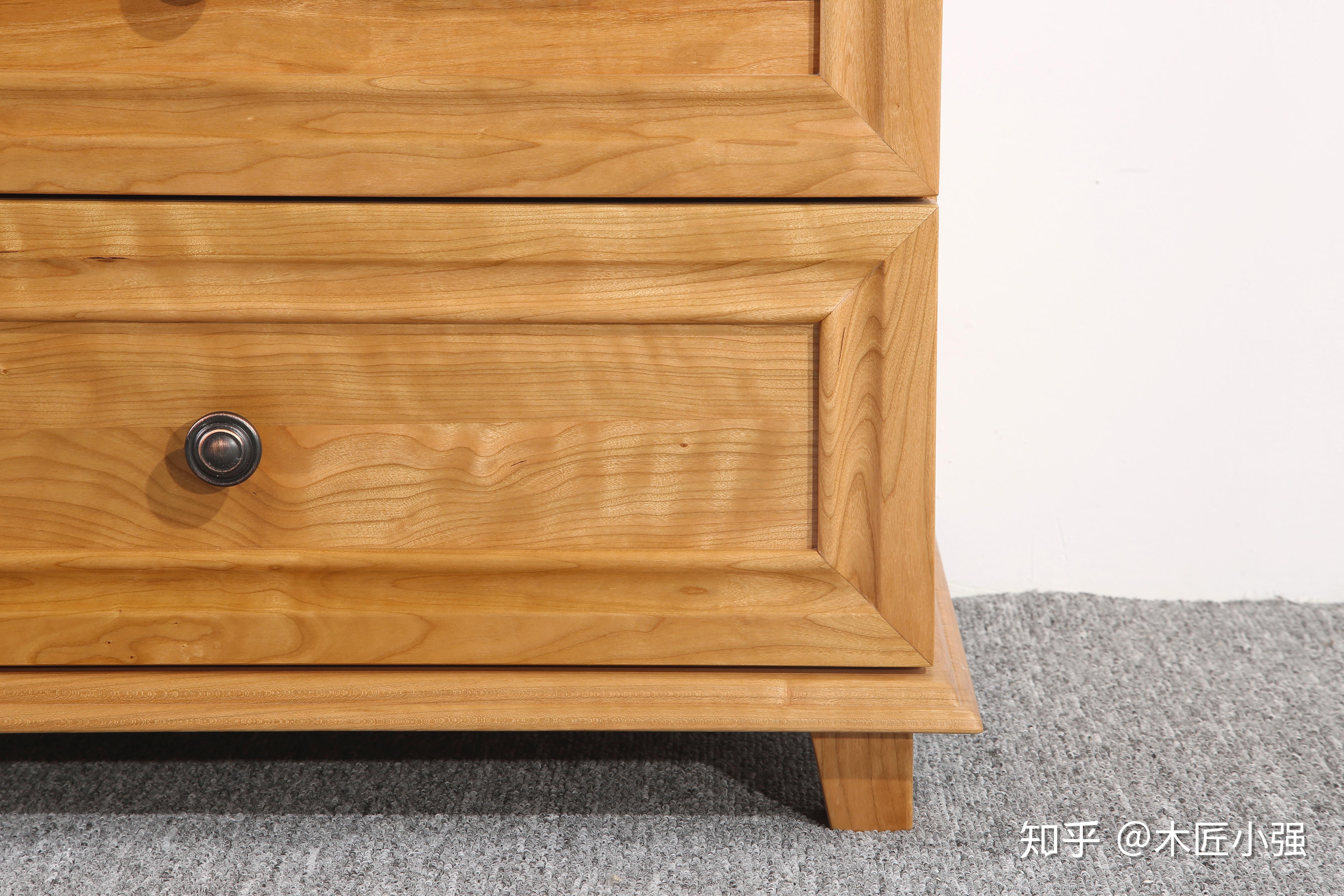 樱桃木,一开始是淡粉色&黄粉色,氧化后会变的更红,分布于美国东部地区,纹理细腻清晰且木性稳定,打磨抛光质感出色,手感很出色,完全不输于黑胡桃木,用它做的家具也是别具一格。