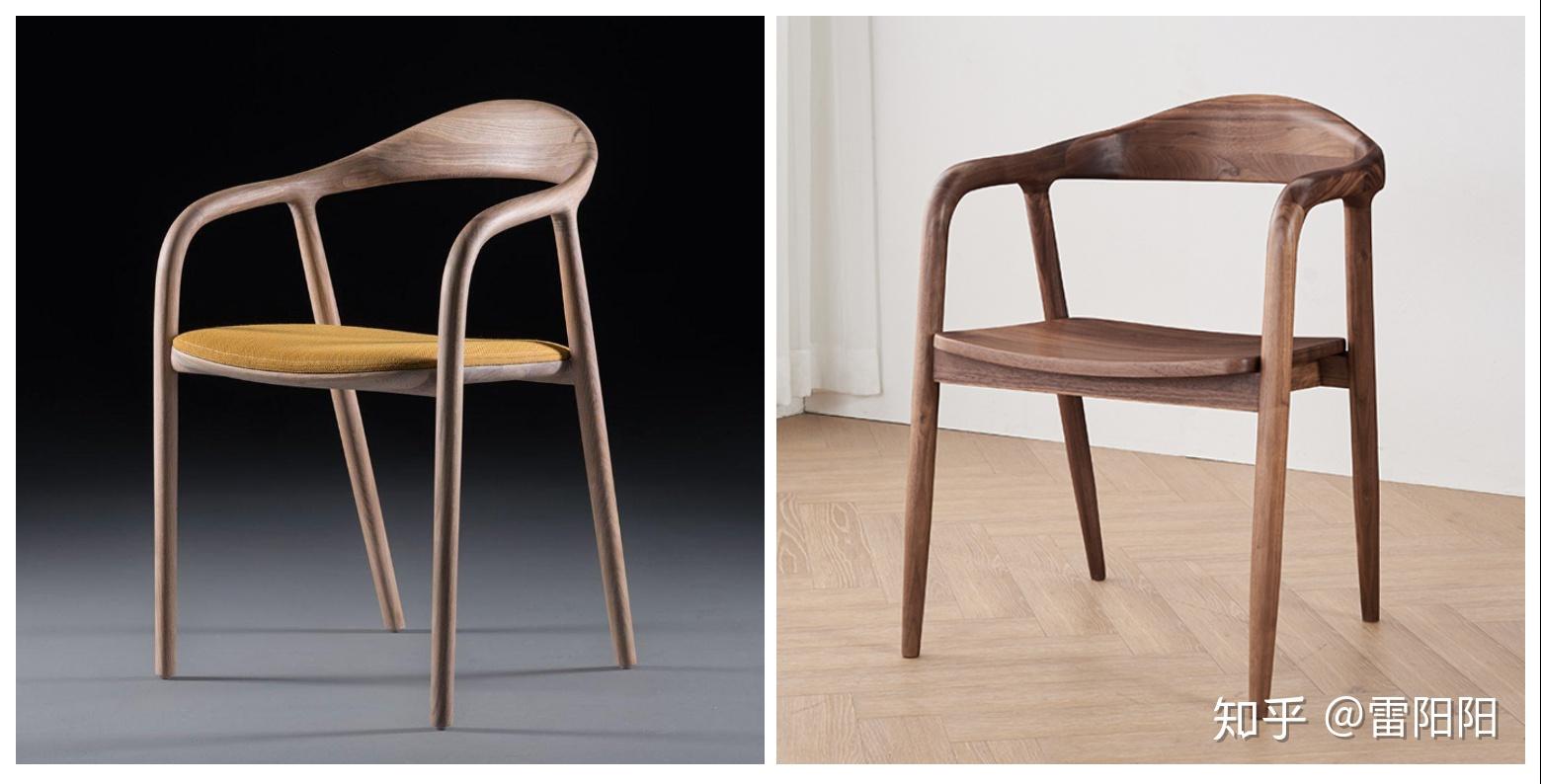 下图左边的案例是国外的作品,获得过红点设计奖,右侧的是国内作品。两把椅子有着相似的造型,但水平一目了然。