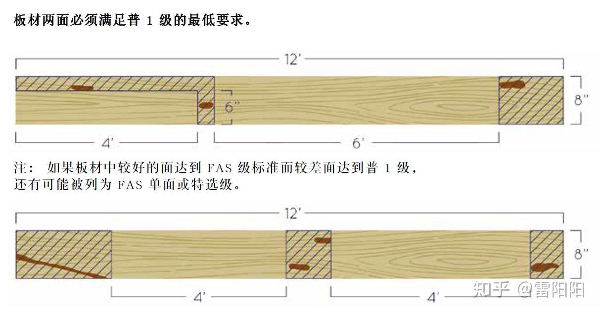 NHLA的高等级木材还包括F1F级(FAS单面,较好面满足FAS级标准,较差面满足普1级标准)和Selects级(特选级,板面最小尺寸要求大于FAS级,其他标准一致),美国出口来的FAS级是混装F1F和Selects级的,具体混装比例与品牌标准有关系,所以国内没有这两个等级。