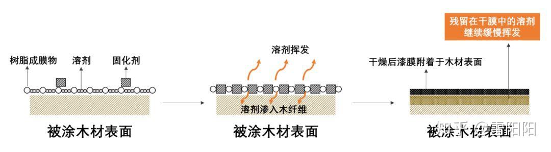 这些溶剂最终去哪儿了?油漆从液态转变为固态涂膜的过程中(成膜过程),大部分有机溶剂会挥发,之后形成漆膜。但是这一过程中溶剂也会渗入被涂家具的木纤维内,在干燥的漆膜中残留,之后再缓慢挥发。
