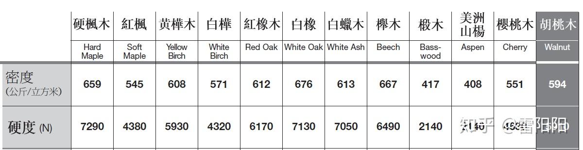 黑胡桃的硬度在北美木材里属于中等水平,若要算上“红木”家具的话,排名就要靠后了。硬度值是通过机器实验得到的数据,实际我们可以用粗放的方法,用大拇指的指甲在木板上试压,看有没有痕迹,确定其软硬程度。同时用力按压黑胡桃木与硬枫木,黑胡桃留下的痕迹会更明显。