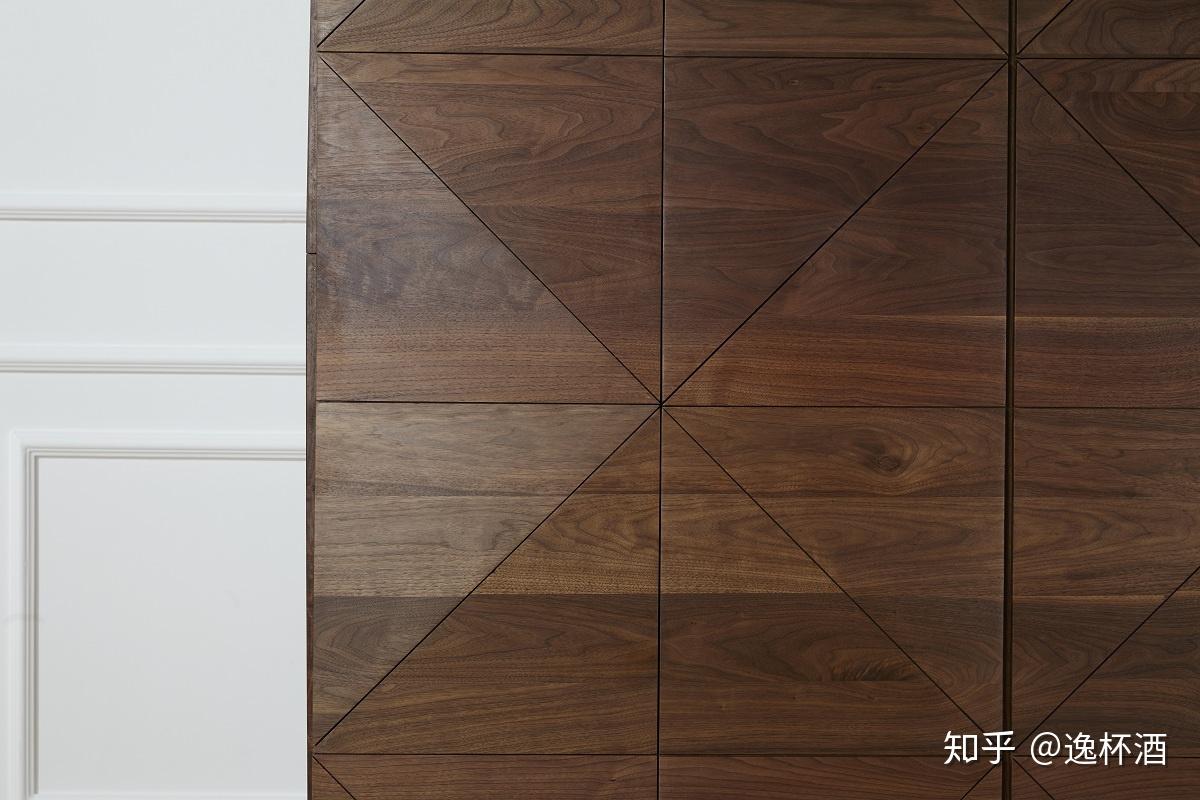 我们说黑胡桃的天然栗褐色温暖迷人,而展示花纹又需要足够的面宽,结果有些设计就特别简单粗暴的铺上一面墙,搞得像卖木材一样,单调压抑,反而显得粗鄙。