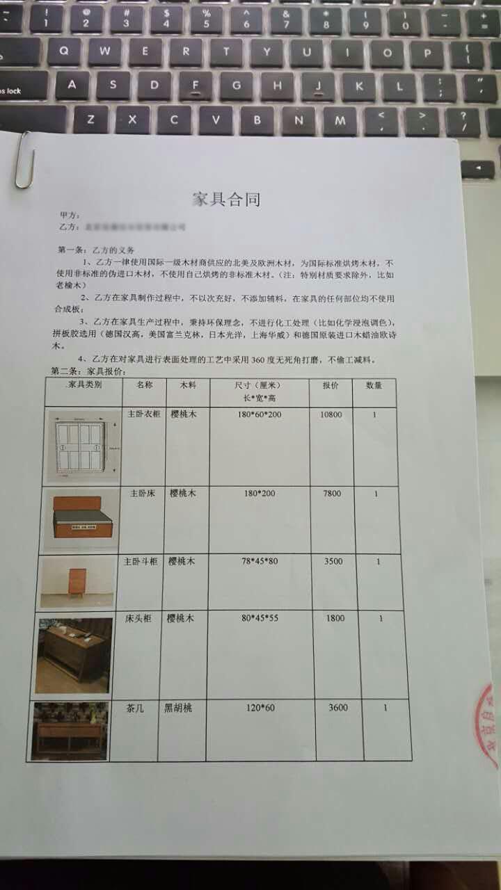 注意:一定要在合同中明确规定选材用料甚至工艺的明确规定。我用的这家,北京天津周边很方便过去看,外地据说也不少订制的。按照他们的说法,如果有两个不算太笨的男生在当地,就可以组装好他们的家具。