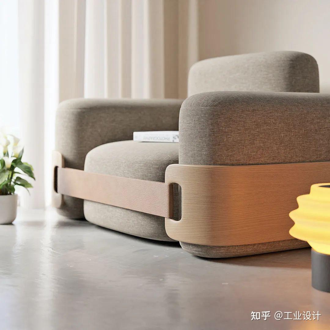 “汉堡”沙发是对 4 个靠垫(座椅、扶手和靠背)如何通过一条独特的腰带进行美学挤压的概念探索,设计一种无需螺丝即可轻松组装但同时看起来又安全又舒适的东西。