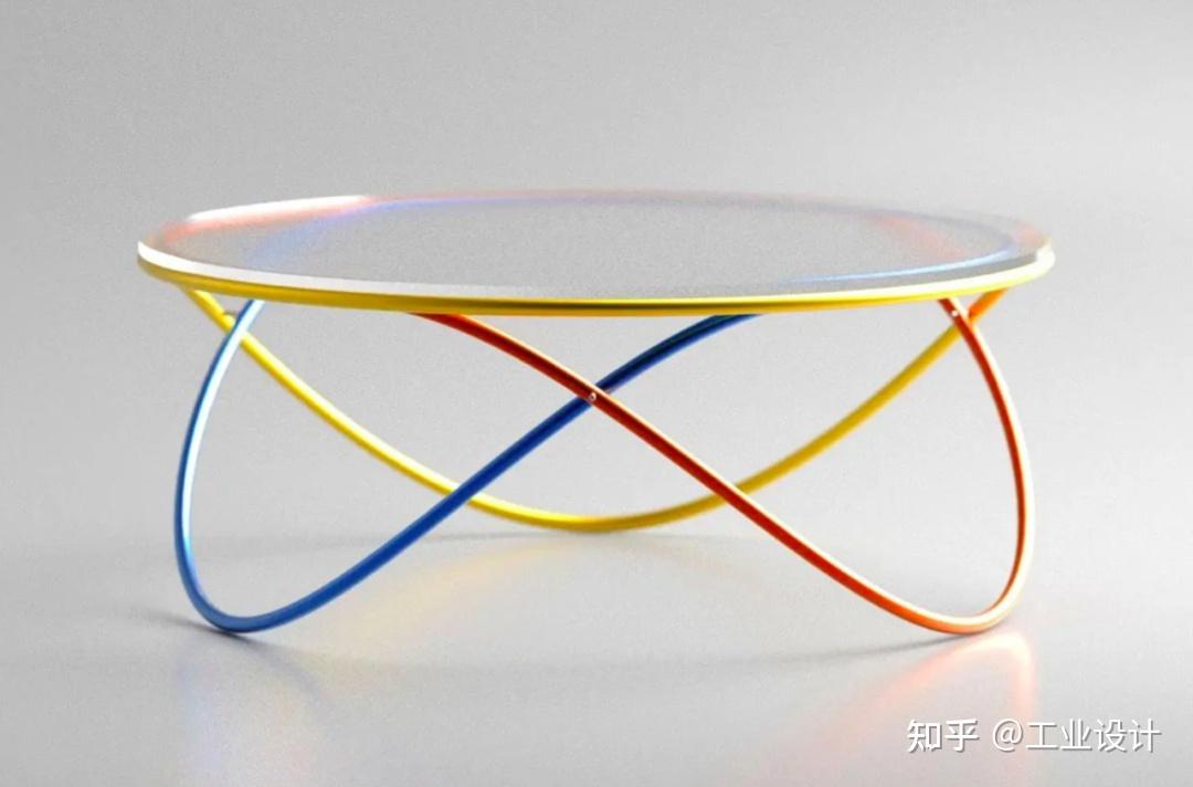 这款咖啡桌以其多彩多姿的交叉腿而著称。Aktay 从外太空的轨道中汲取了桌腿的灵感。咖啡桌采用圆形玻璃桌面,由三个摆动的金属管支撑。这些管子有趣地交织在一起,形成了一个有趣的视觉网格,通过给每个管子赋予不同的颜色来进一步增强这种视觉效果。