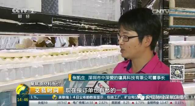 深圳市中深爱的寝具科技有限公司董事长 张凯生:整个国家的发展需求量越来越大,对于大规模或者正规化的工厂来说订单量有所上涨,但同时原材料在上涨,因为一些小规模、非正规化的工厂已经关闭,变成一个涨,一个是销量需求在涨。