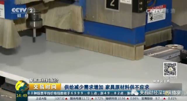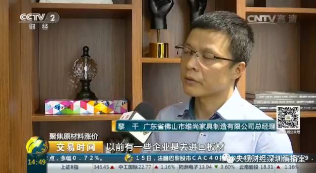 广东省佛山市维尚家具制造有限公司总经理 黎干:以前有一些企业是进口板材,但现在进口难度大,成本会增加,所以也转到内需。因为国家对板材的要求,像室内家具的要求越来越高。以前有一些小品牌用的材料比较差,现在也没办法,也要追求一些好材料,这个地方的需求增加了。