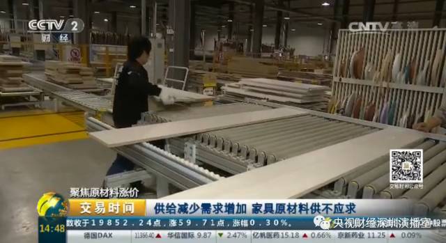 广东省佛山市维尚家具制造有限公司总经理 黎干:就像我们一样,我们以前一车板材运过来,我们供应商大概装71方,现在只能装50方,这个对我们来讲也会有百分之几的上升。