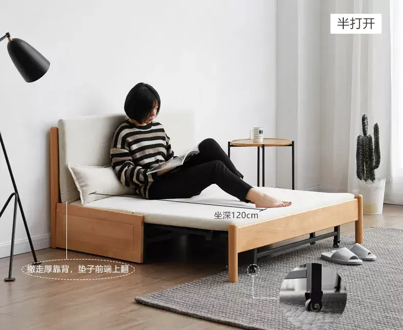 平时看起来像一个沙发,打开之后的尺寸更像一个床,非常舒适。