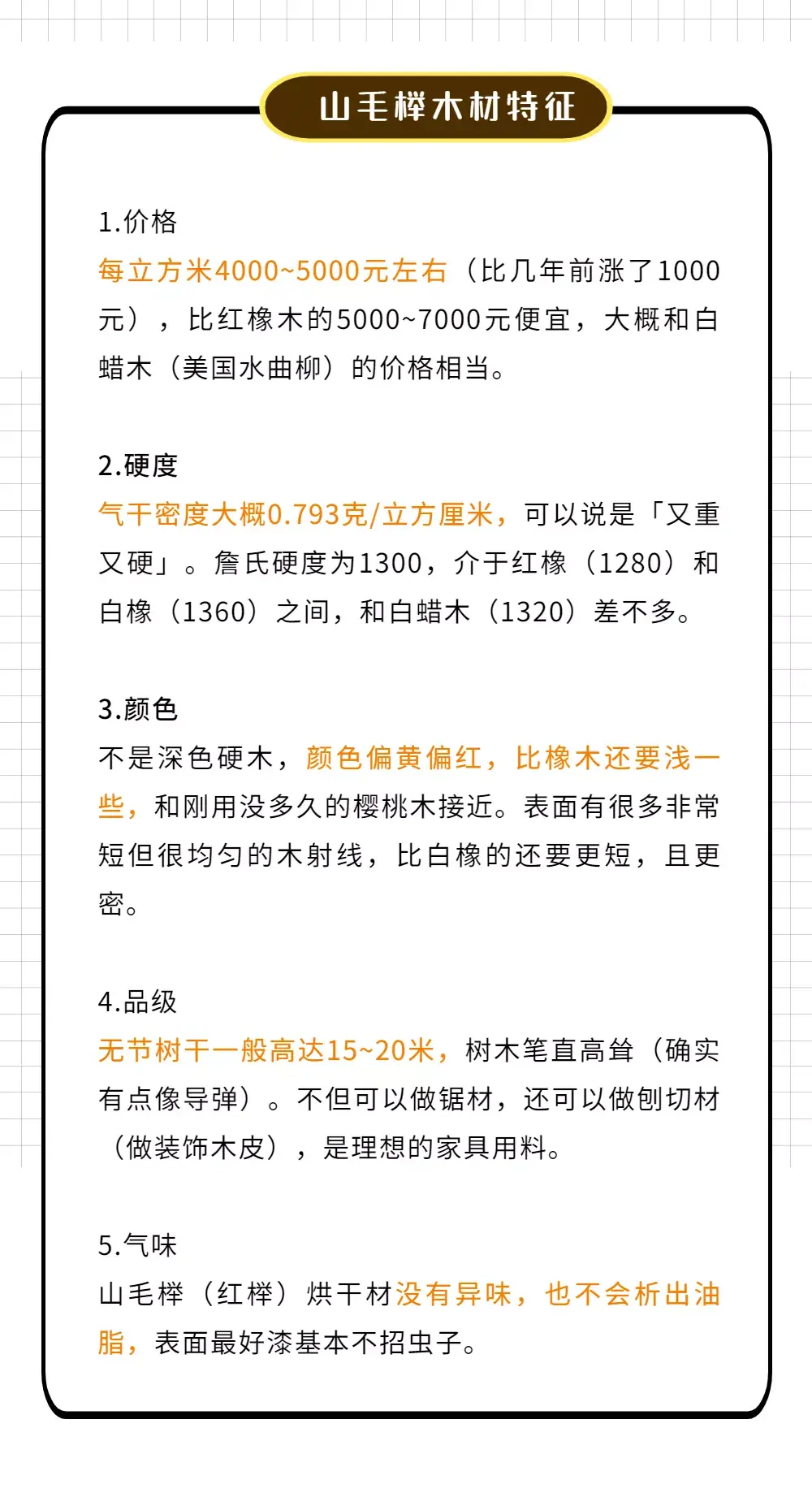 事实上,榉木价格不仅比樱桃木低,甚至比橡木也要低一些。