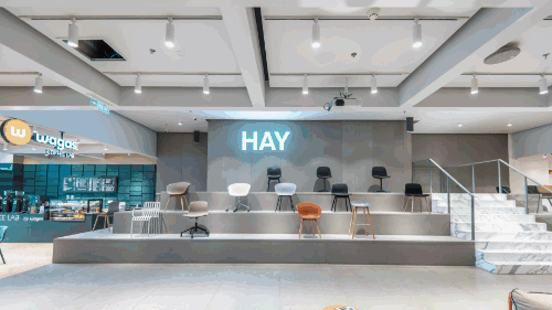 HAY位于苏州的店面分为上下两层,占地面积约1500㎡,是目前亚洲最大的旗舰店。整体的空间设计通过天花板网络体系建筑结构衔接不同材质隔墙的特有方式,首次呈现多个经典北欧风完整场景。户外系列专区特以暖红色砖块铺地,恰好与橄榄色的桌椅、葱绿色的植被相偕成趣。