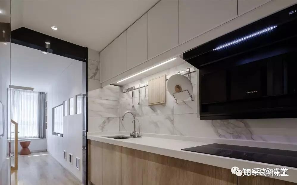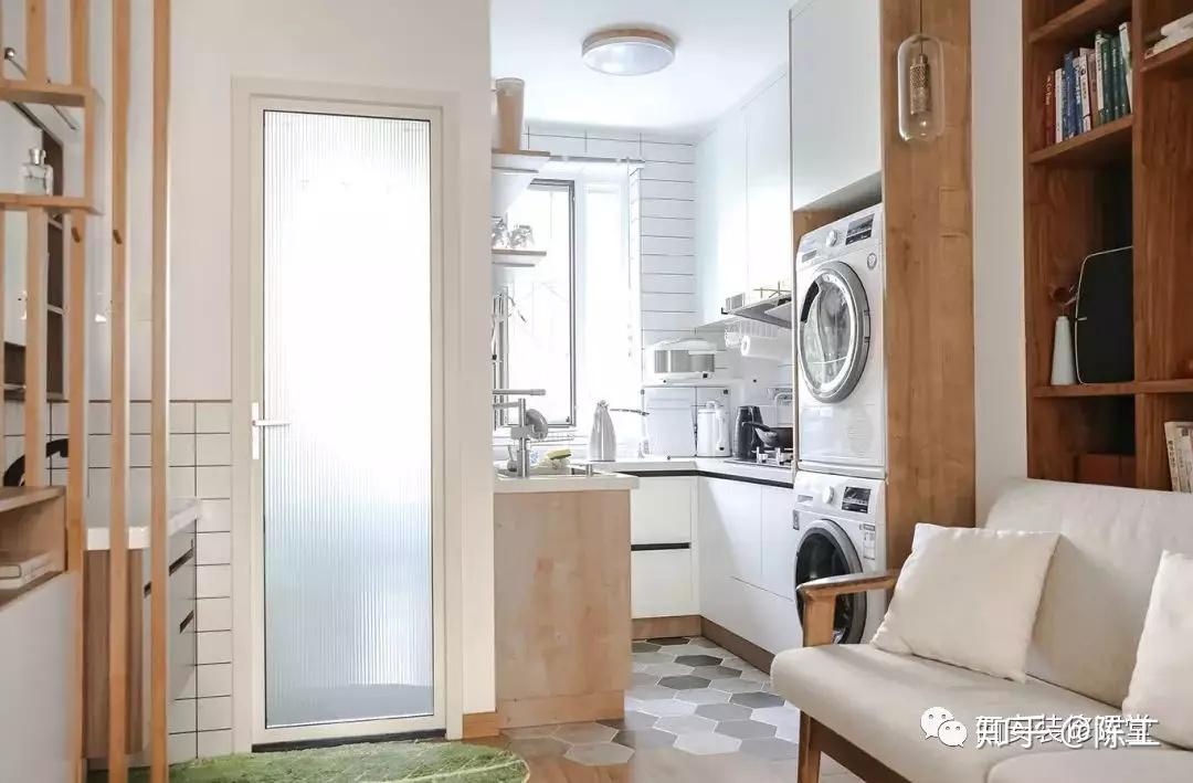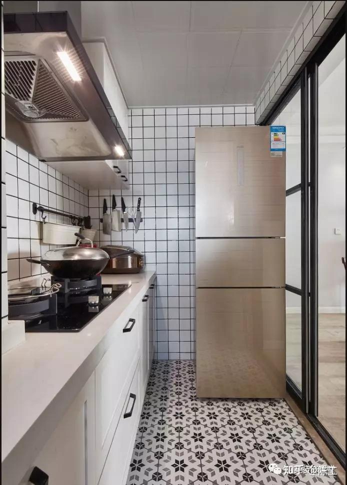 ▲经典小白砖,地面花砖,统一浅回字造型白色橱柜定制,小空间光线更亮堂干净《小白砖的气质,你家用了吗?