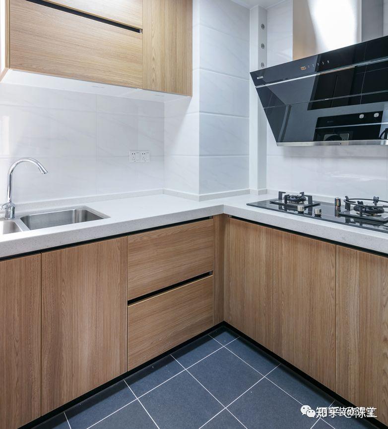 ▲灰地白墙也是常见做法,浅木色橱柜整体无把手平板,视觉干净,同时保证视觉颜色不凌乱《北欧风,橱柜怎么做好看?