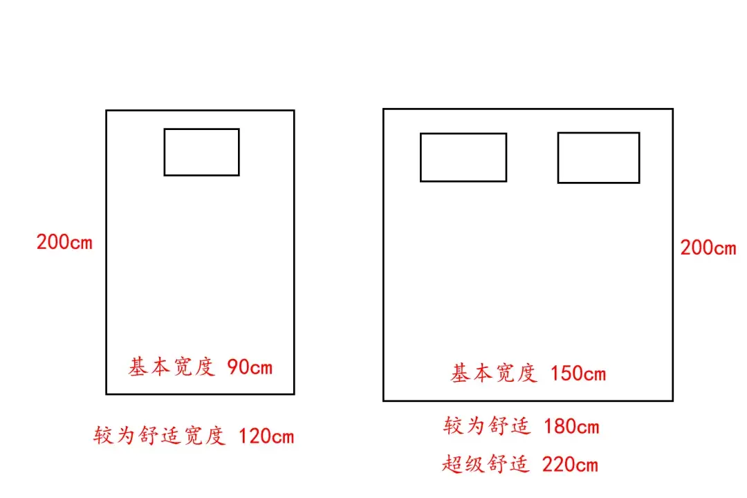如有一侧靠墙,靠墙一侧留50~100 cm,铺床方便。
