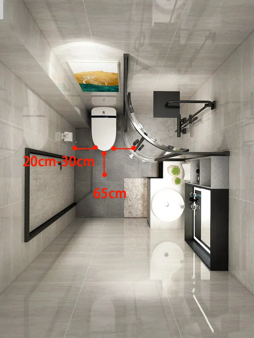 厕所两边留20~30 cm的距离,坐着取物宜。