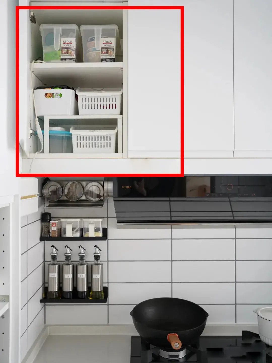PS: 吊柜建议采取开门或上掀式打开方式,内部搭配活动式隔板,便于因应物品形状加以调整。