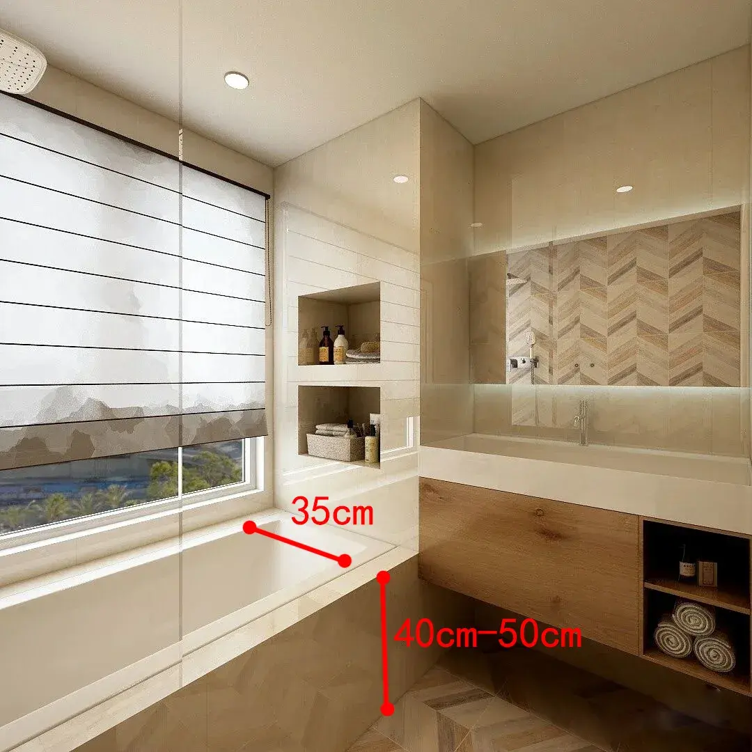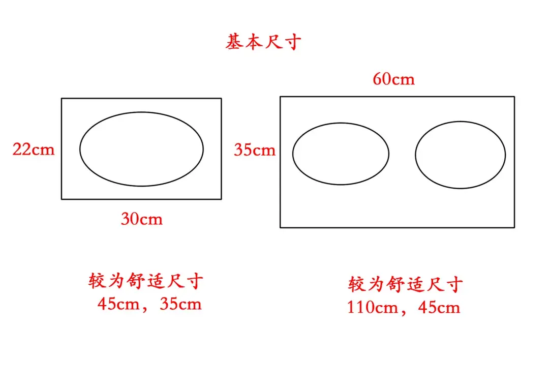推荐洗澡高度40 cm~50 cm,深度35 cm左右,长度需根据自身身高考虑哦!