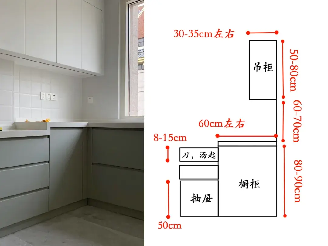 如果台面做成高低台,那么炒菜区要比洗菜区低5~10cm↓↓↓
