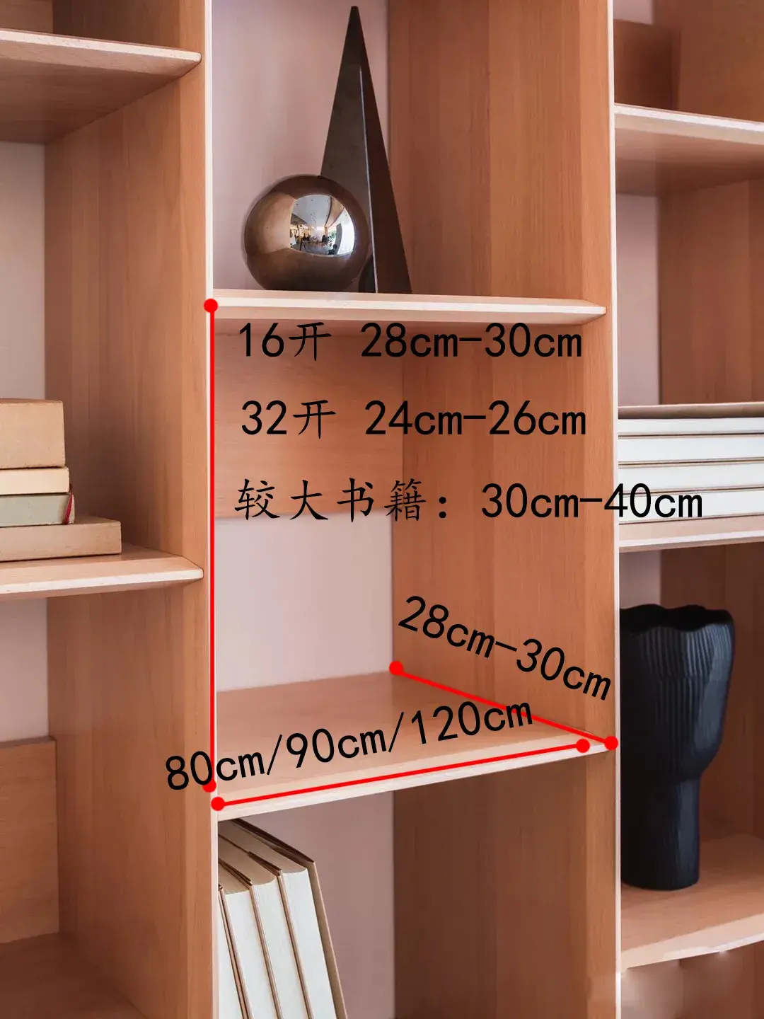 每一个格子的深度建议在28 cm~35 cm之间(按照一般书籍规格)。