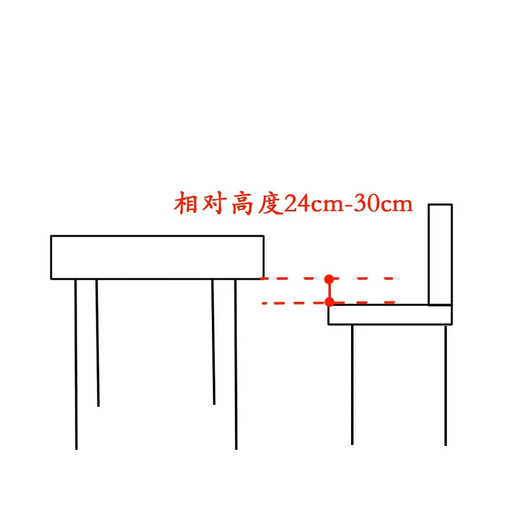 身高*0.25-1,餐桌高度:身高*0.25-1+身高*0.183