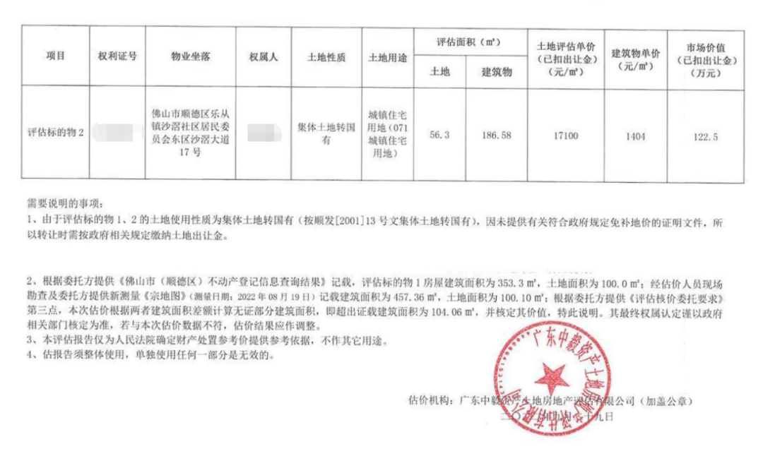 按法院拍卖公告该被拍卖的标的物地址为乐从镇沙滘社区东区沙滘大道17号即街坊们俗称的“乐从沙滘路口”