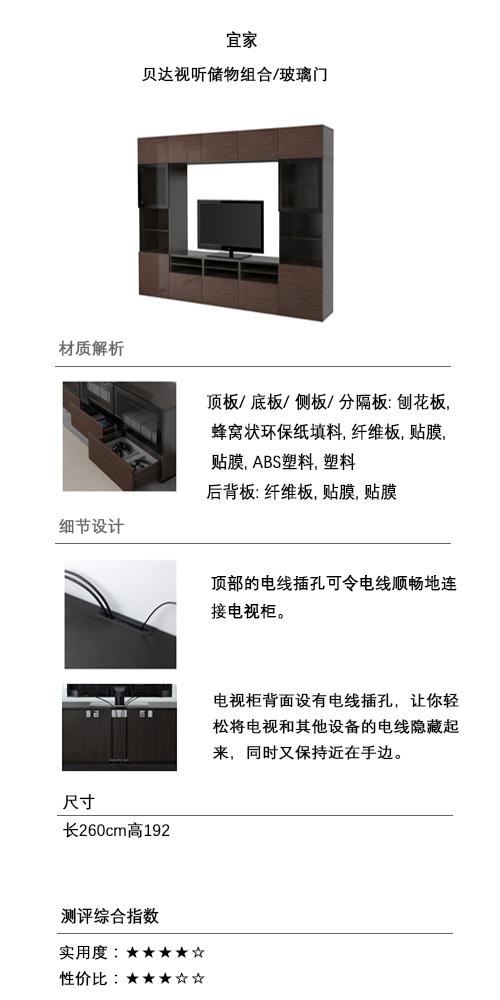作为一个实木家具爱好者,虽然宜家这类的电视柜在设计细节上令我佩服,但是大面积的使用纤维板和环保纸总让我觉得这东西总是有摇摇欲坠的感觉。如果是租房子临时用还好,用几年就可以扔了,如果是买的房,我觉得还是多考虑一下材质的耐用程度,特别是在南方,潮湿的天气很容易令这种材质变形,并且像这样的材料在组装过一次之后拆下是没有办法再组装成原样的。