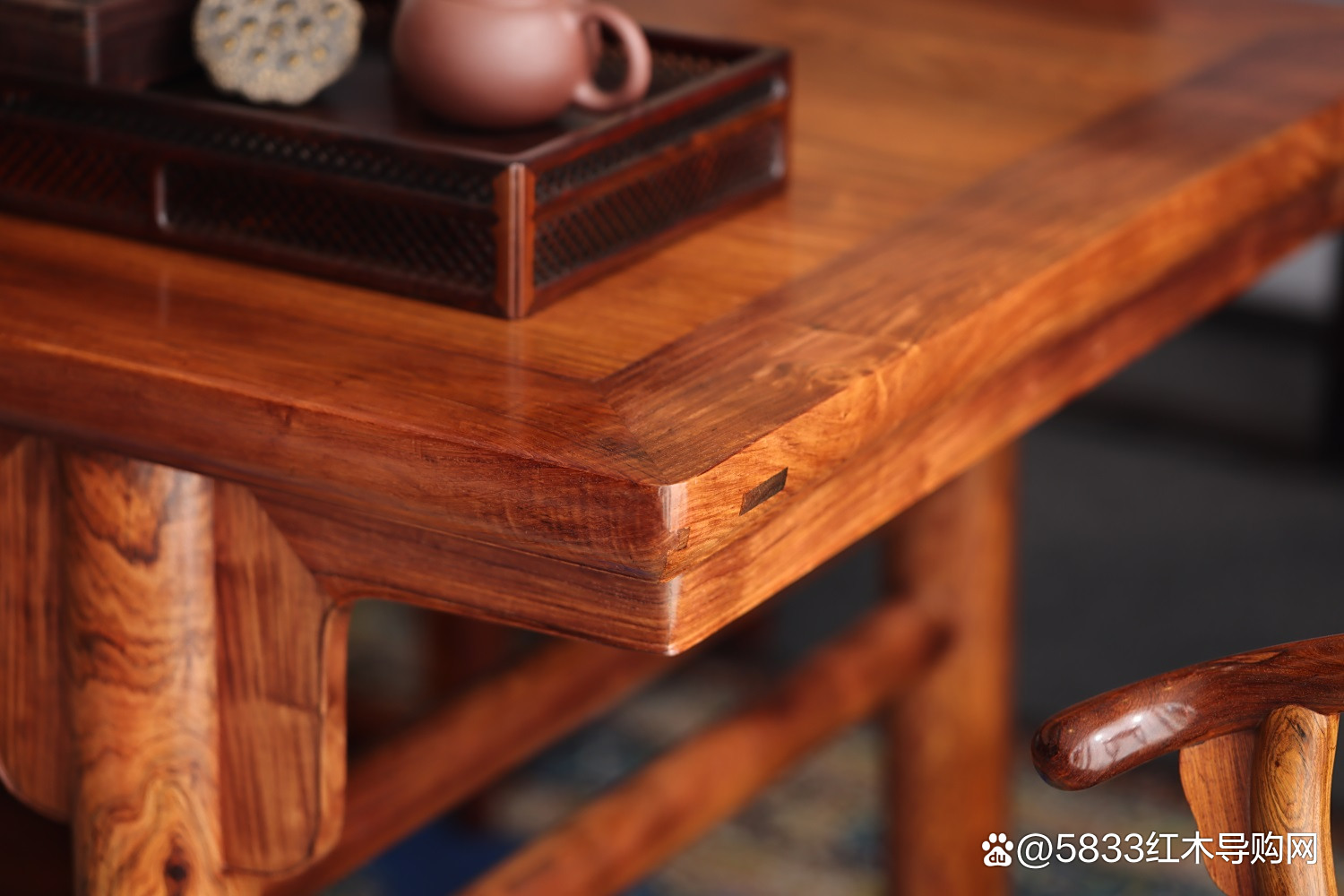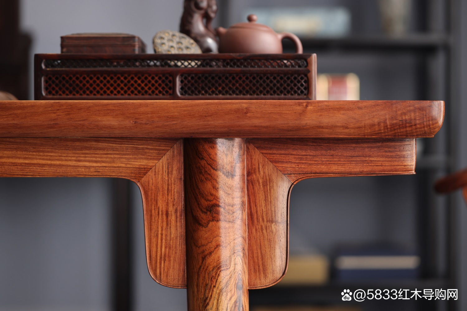 把最好看的黄花梨的纹理,比如说用在椅子的靠背上,一眼一看,整个纹理就非常的漂亮,比如说把好看的纹理用在桌面上,用在条案的案面上,则有行云流水般的感觉,就像一幅写意画一样,所以这就是黄花梨,它的优势就适合做明式风格,简洁素雅的家具。