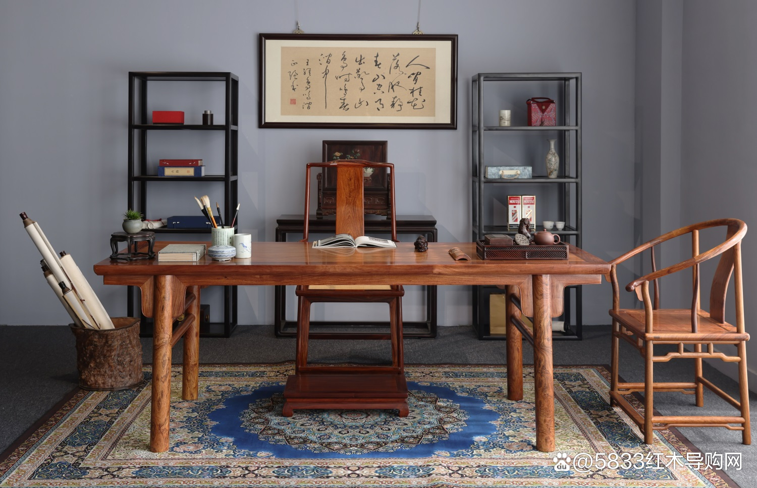 由于黄花梨的纹理非常的美丽,所以黄花梨做家具要简洁素雅,如果雕工繁琐,造型繁琐,那就破坏了纹理带来的自然之美,用黄花梨材质做的明式家具,基本都是比较素雅。
